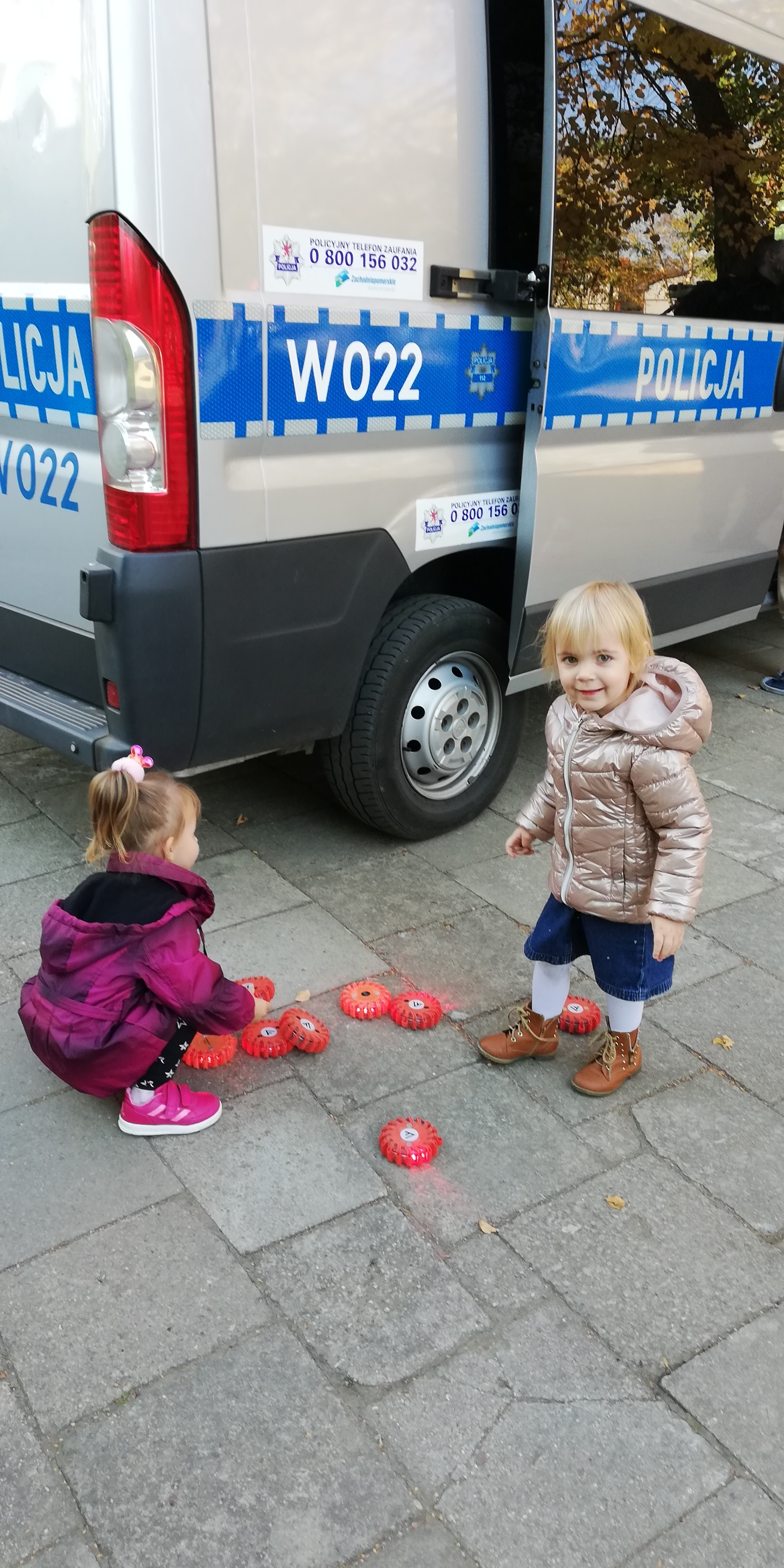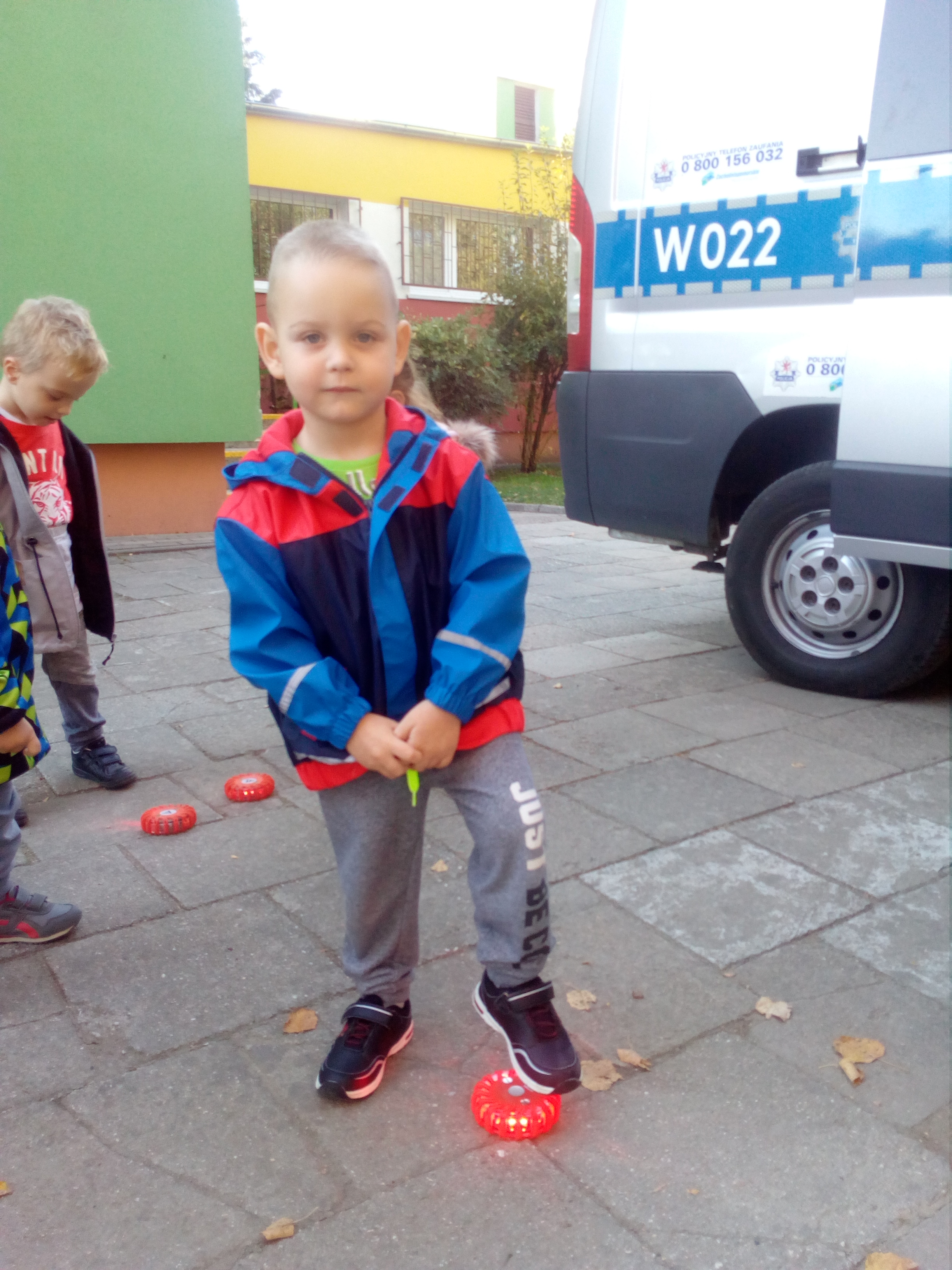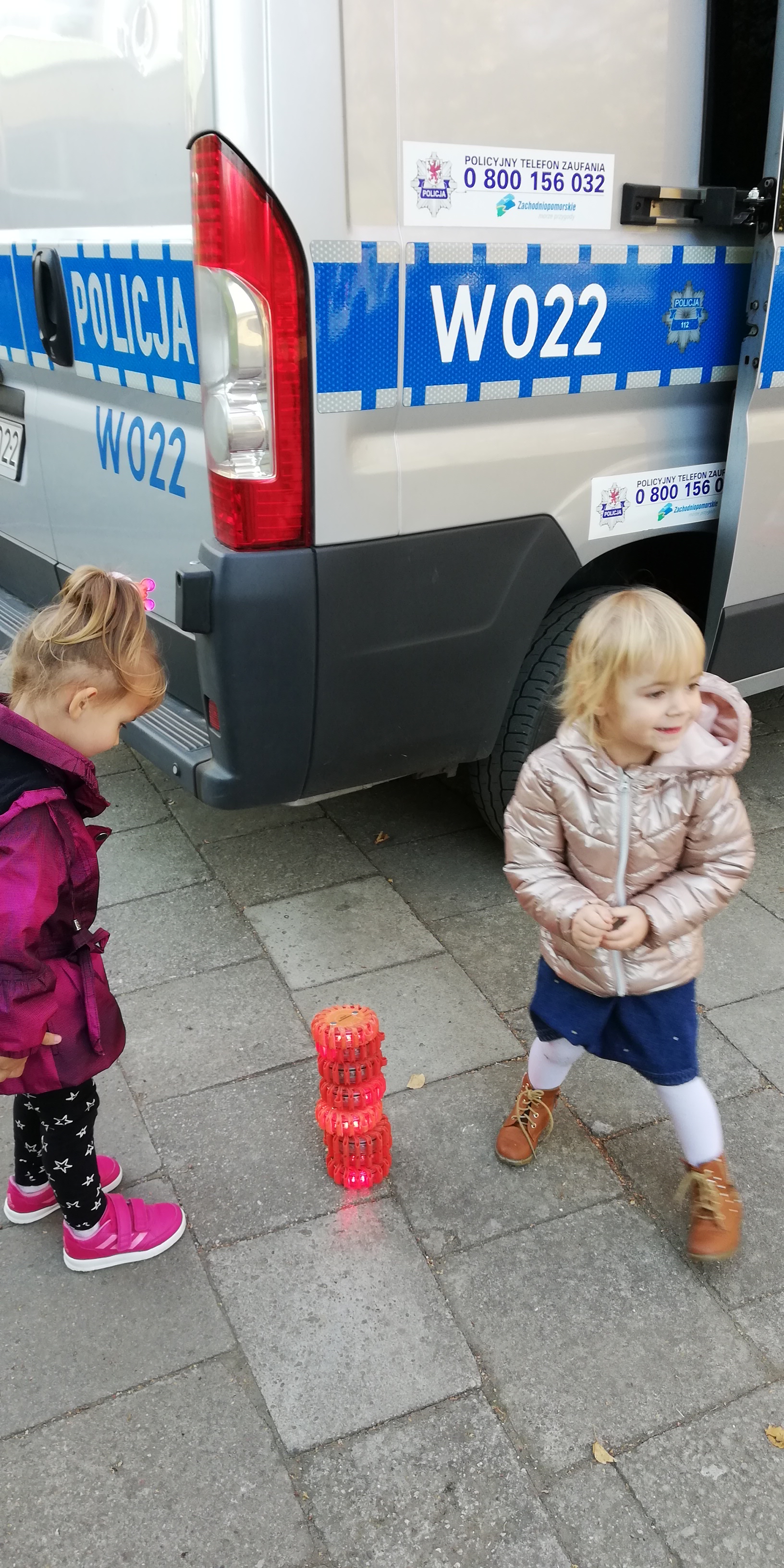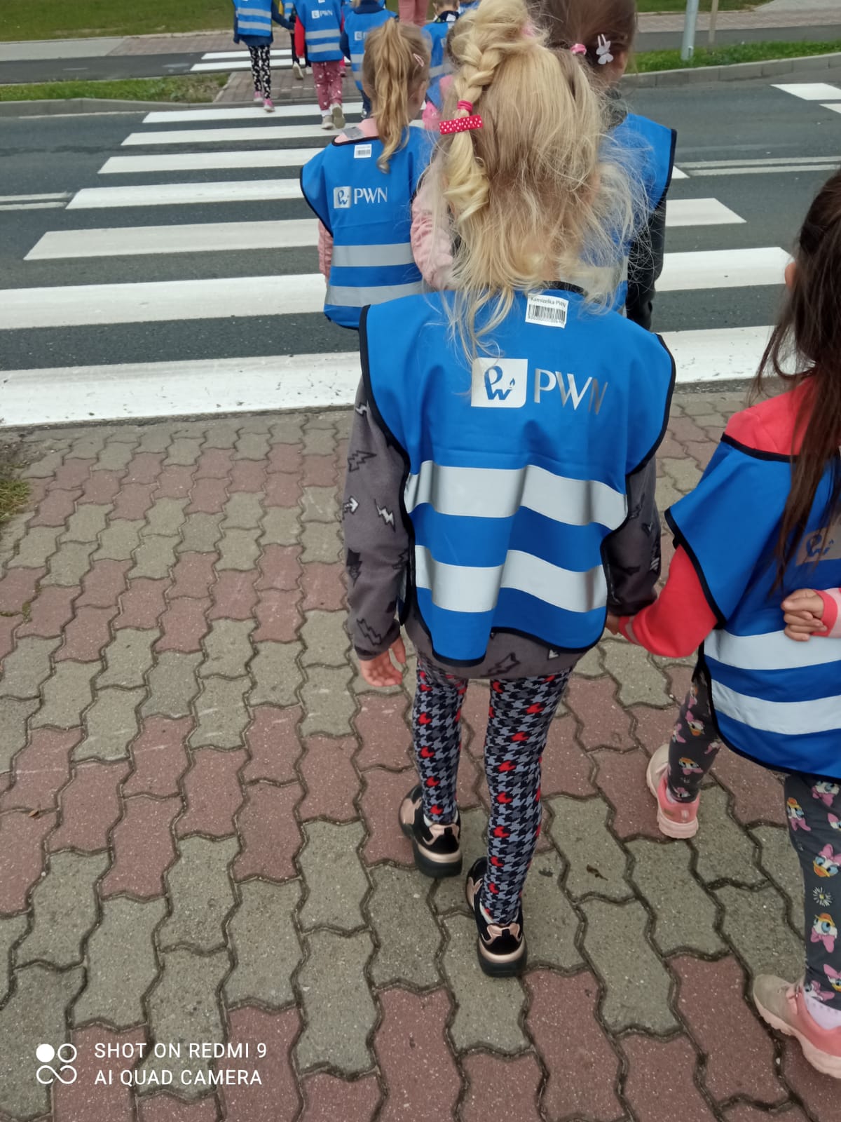 Maluszki dowiedziały się, że przechodzimy przez jezdnię w miejscu dla pieszych – zebrze, że przed przejściem trzeba się rozejrzeć, na czerwonym świetle trzeba stać, a na zielonym można przejść przez jezdnię.