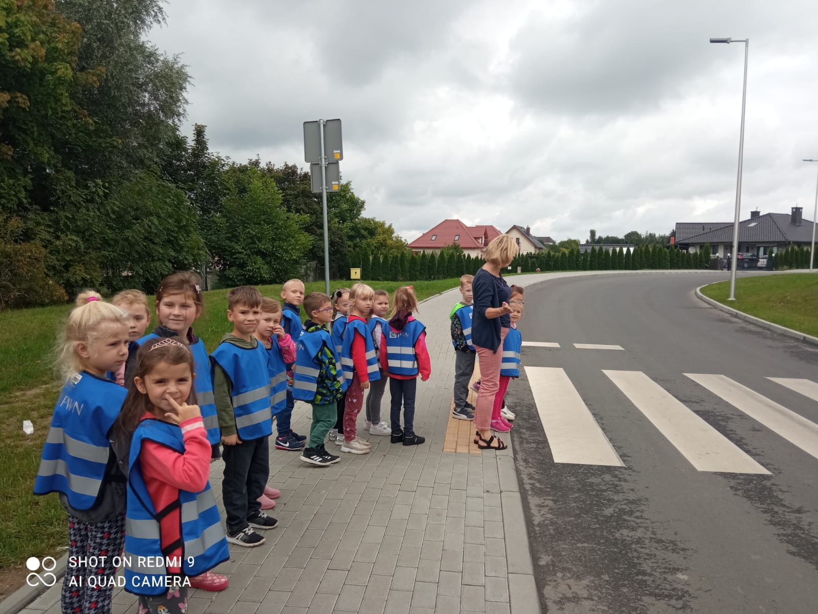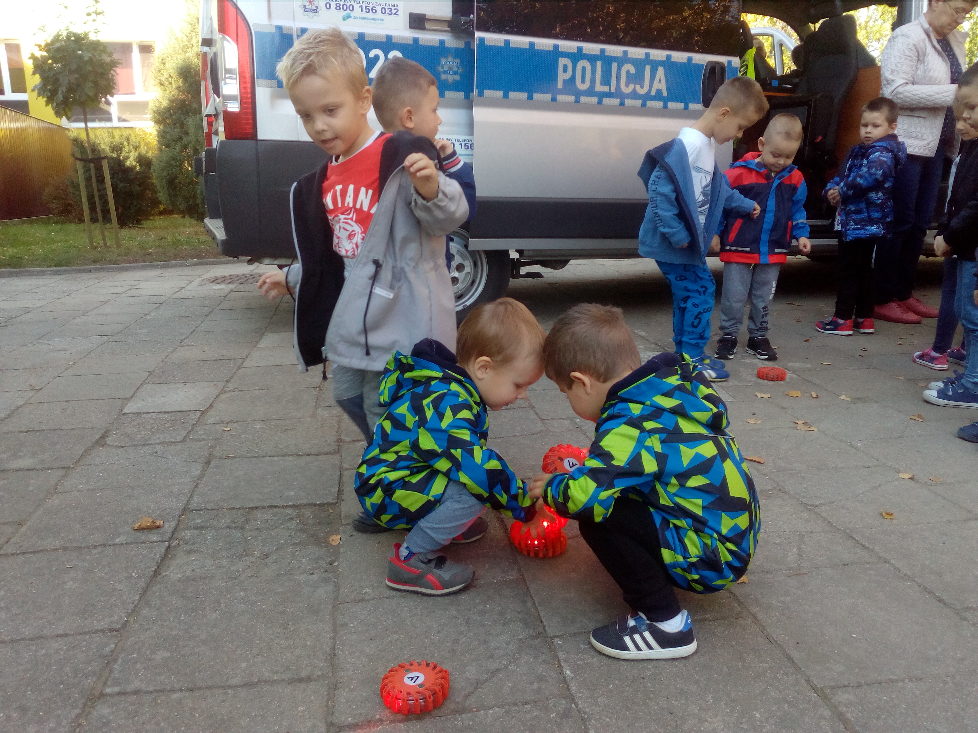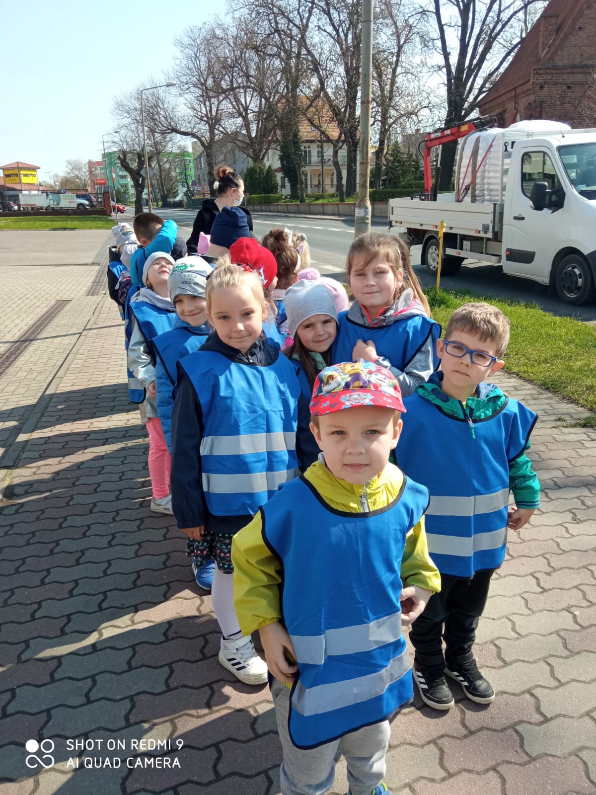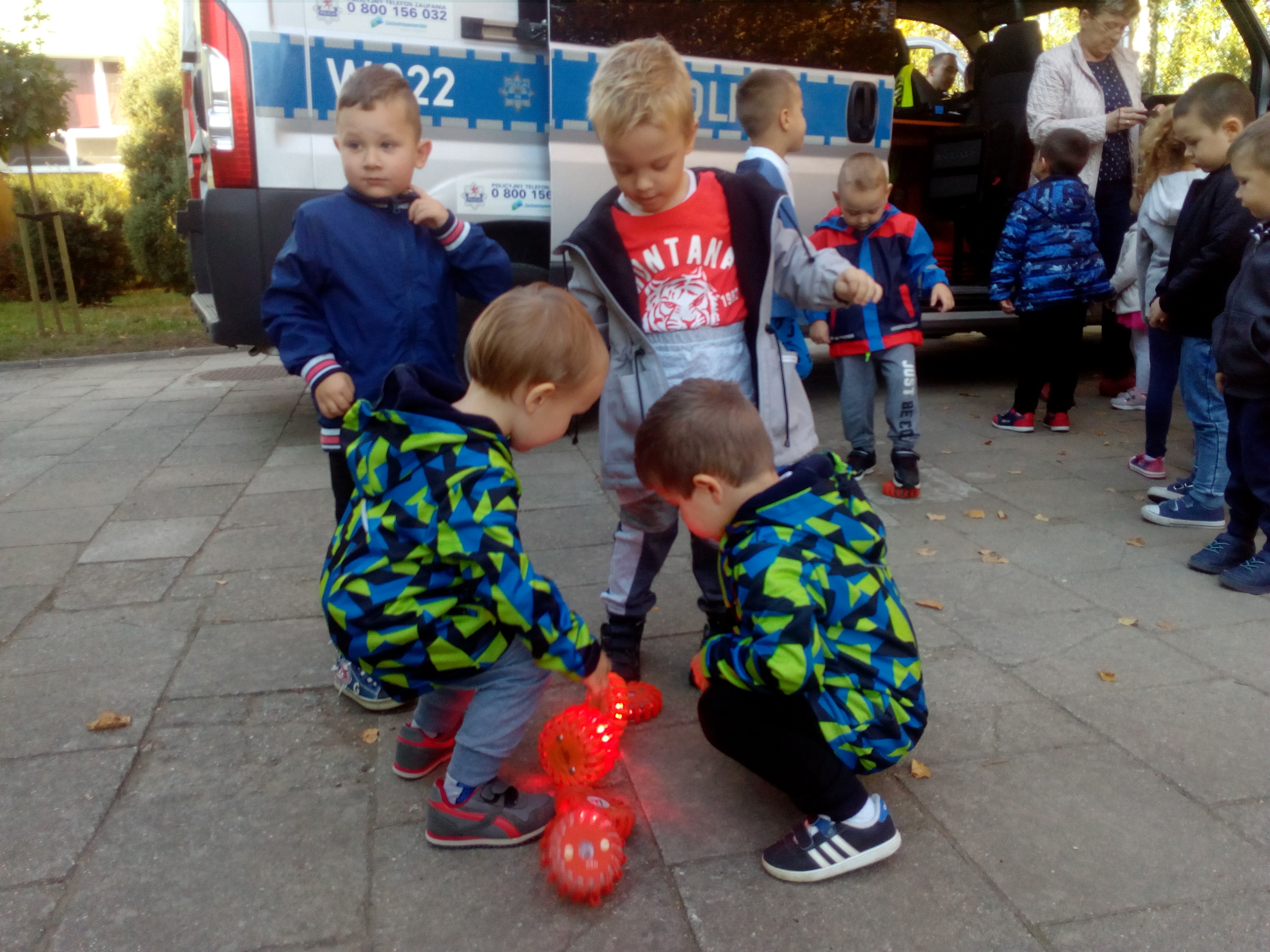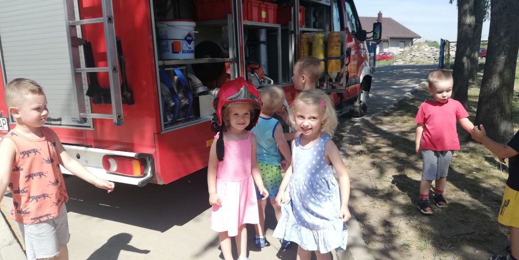 Maluszki dowiedziały się, że przechodzimy przez jezdnię w miejscu dla pieszych – zebrze, że przed przejściem trzeba się rozejrzeć, na czerwonym świetle trzeba stać, a na zielonym można przejść przez jezdnię.