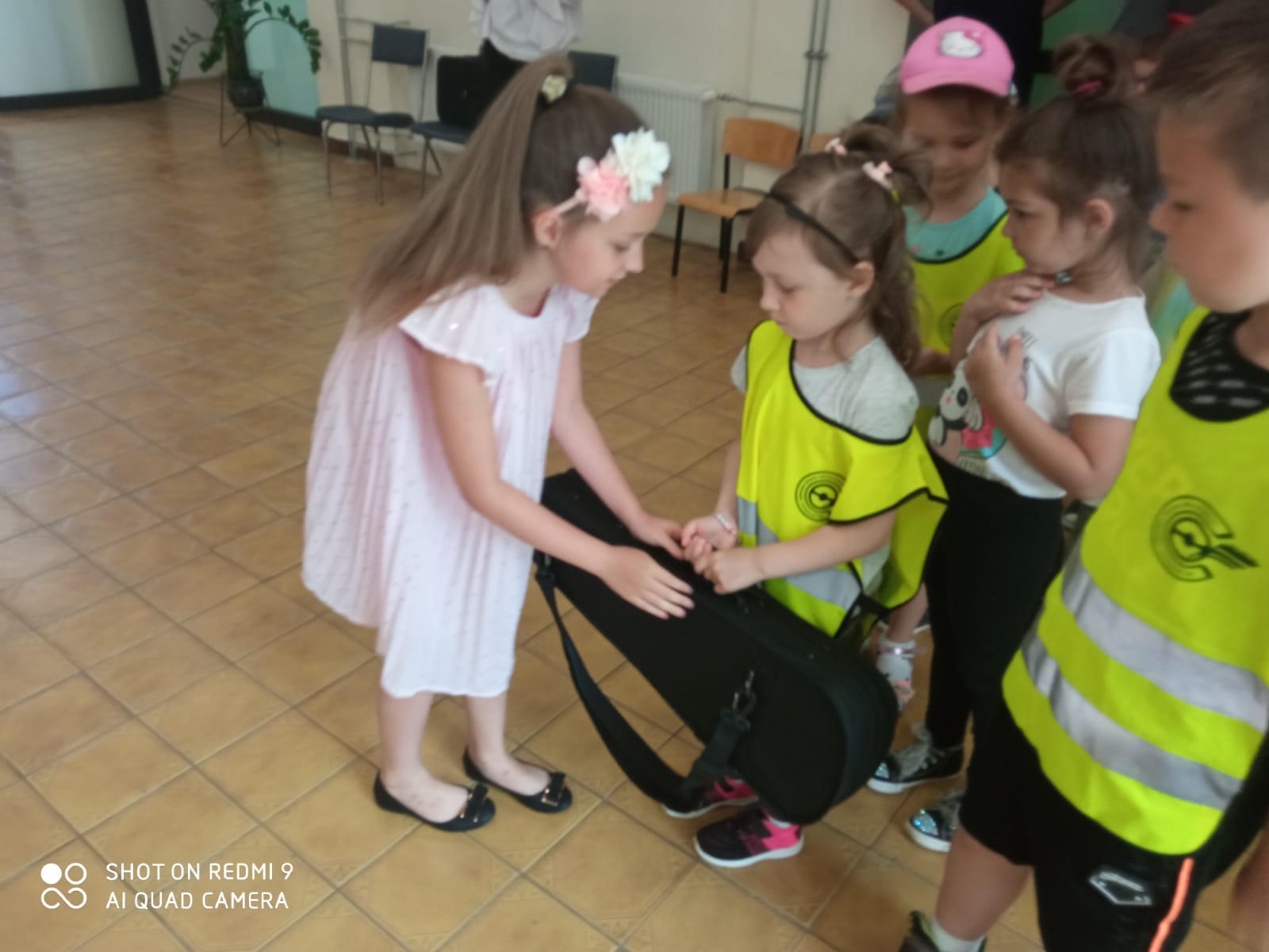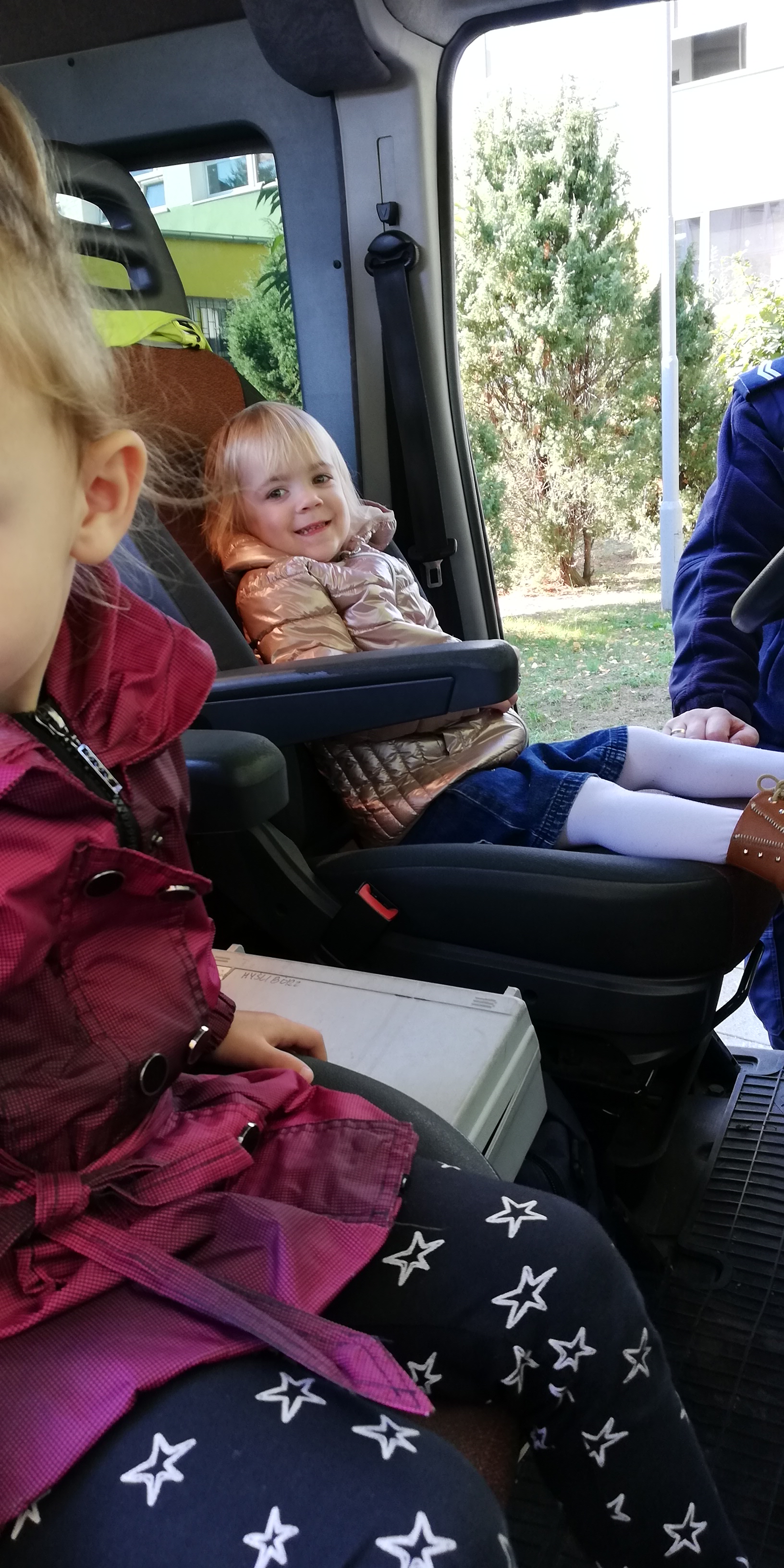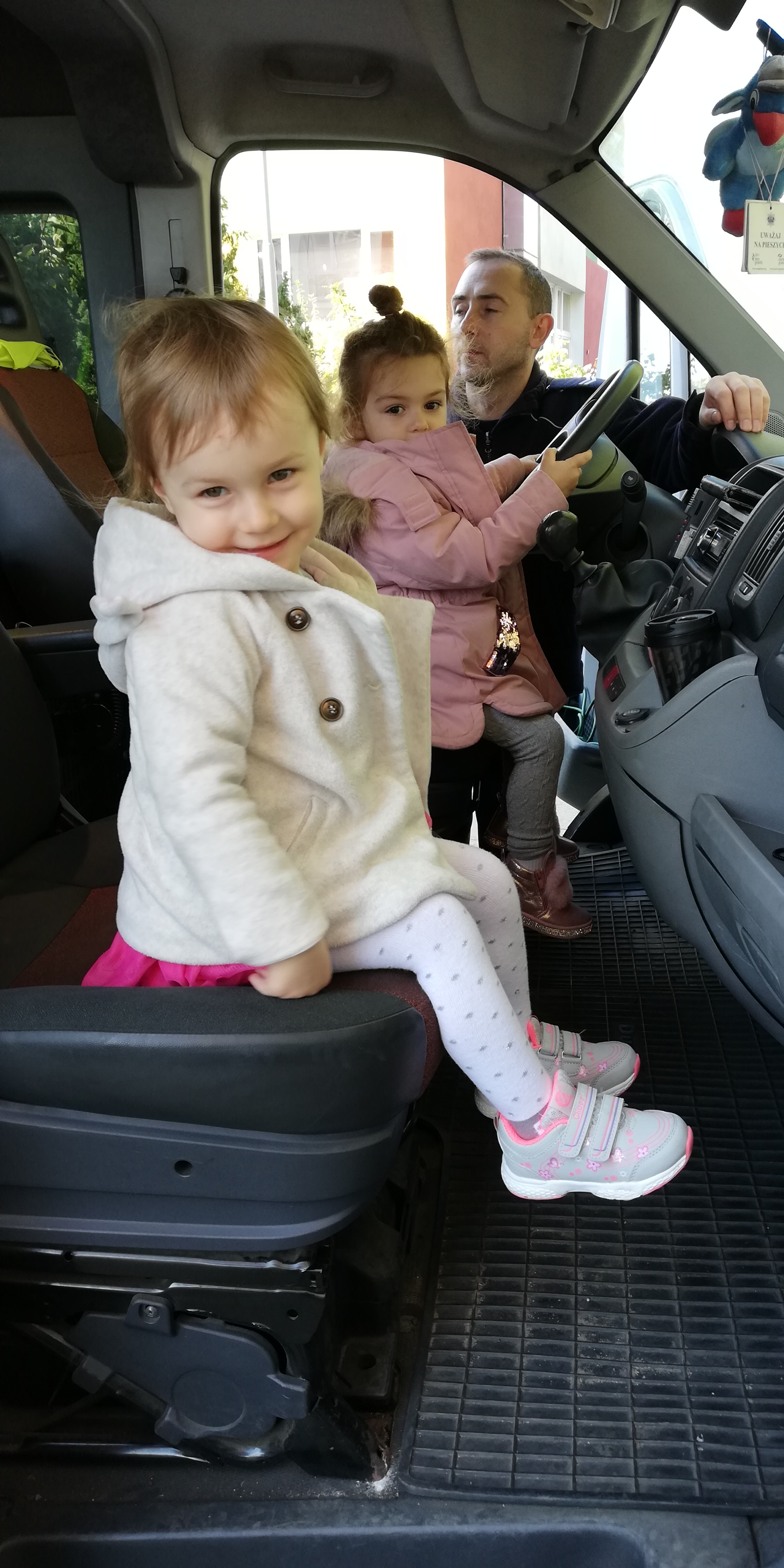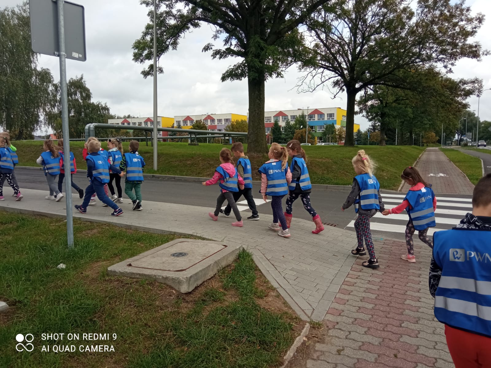 Maluszki dowiedziały się, że przechodzimy przez jezdnię w miejscu dla pieszych – zebrze, że przed przejściem trzeba się rozejrzeć, na czerwonym świetle trzeba stać, a na zielonym można przejść przez jezdnię.