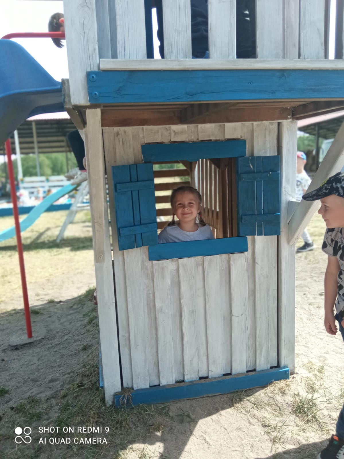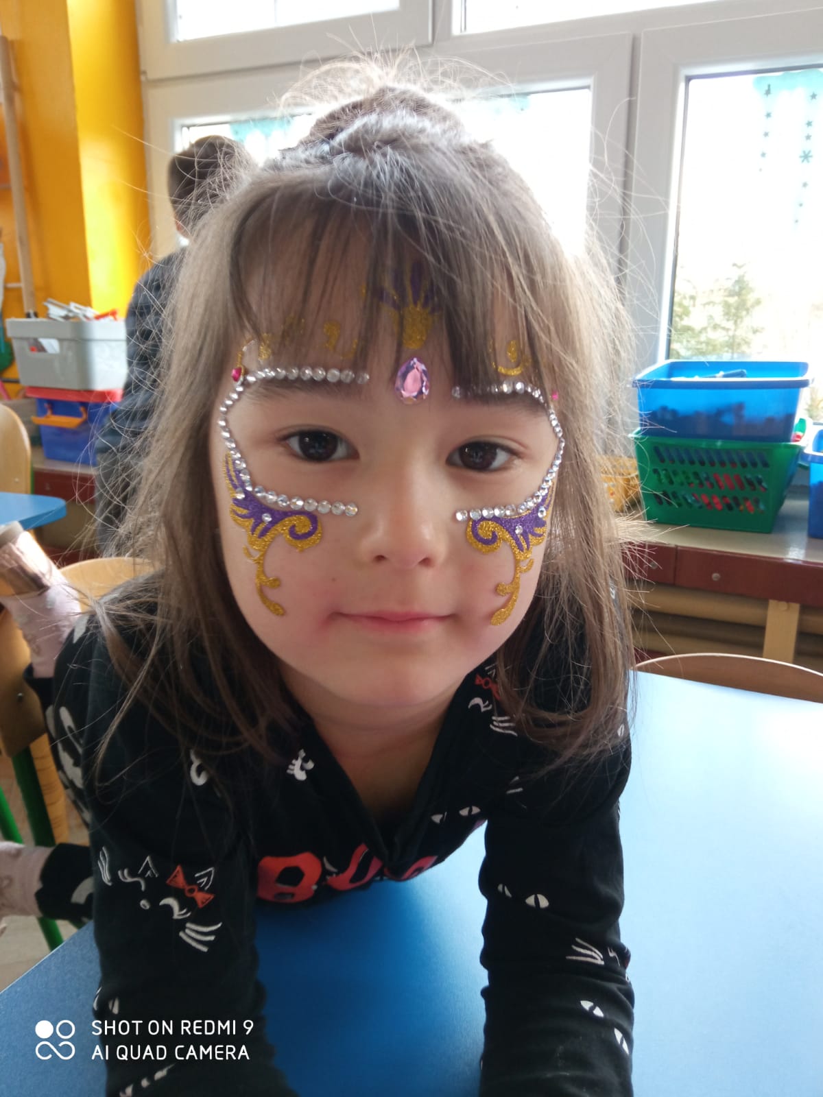 błyszczą niebieskie oczy.