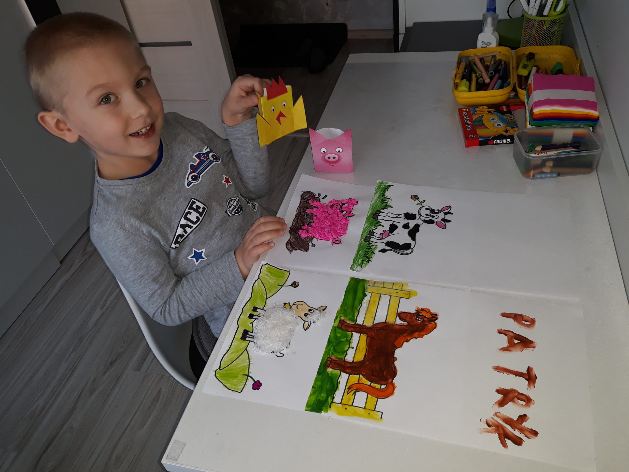 Gotowe prace przynieście w poniedziałek do przedszkola.
