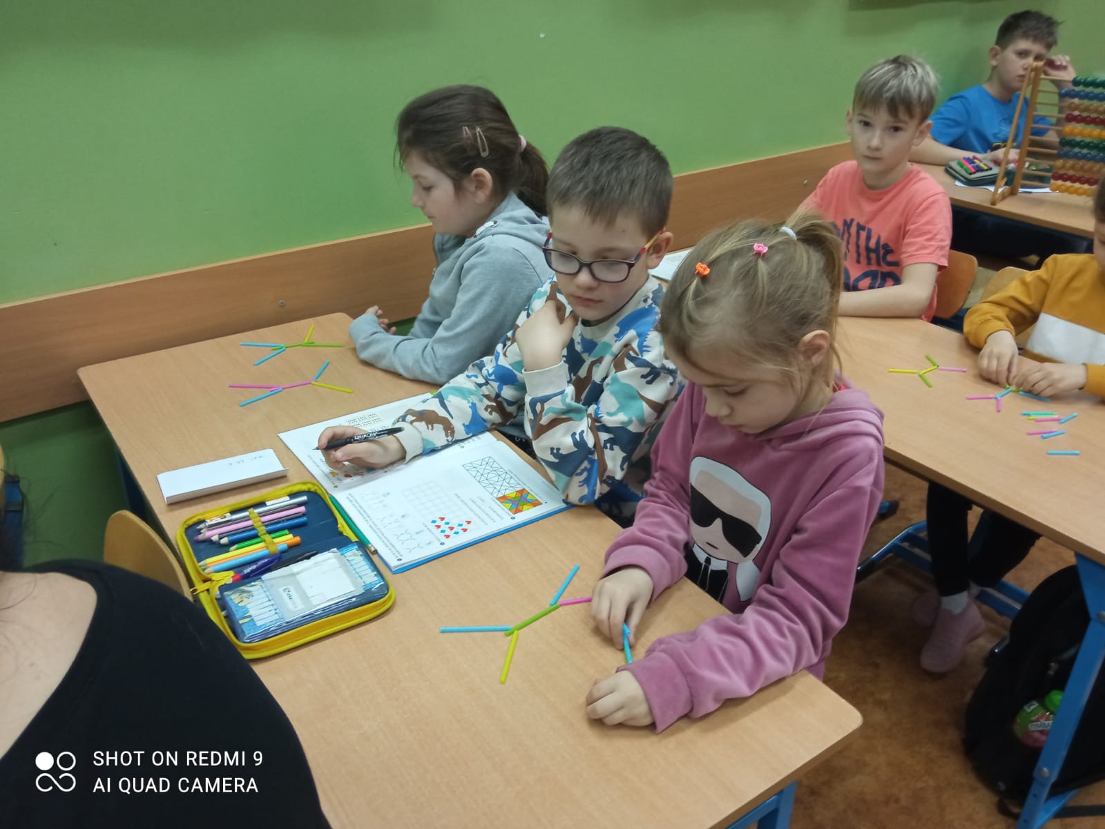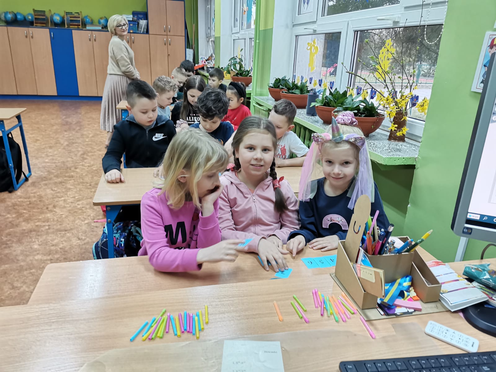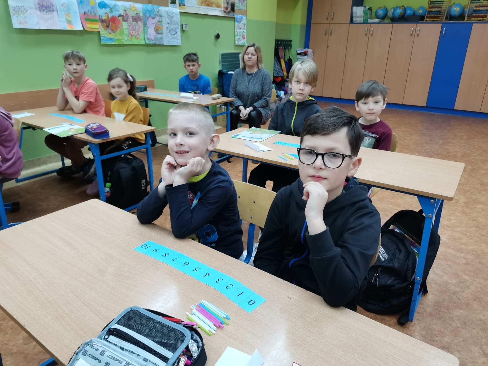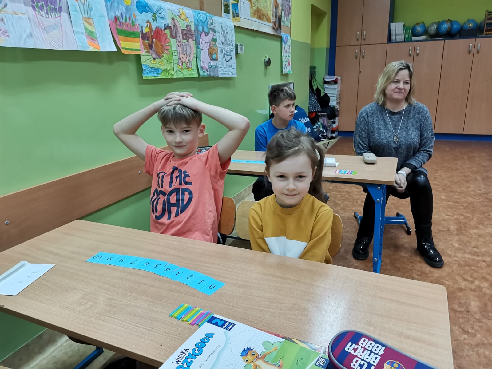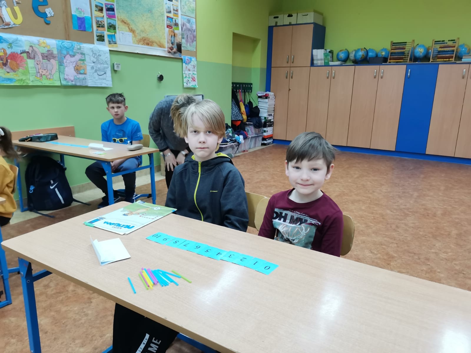 Serdecznie dziękujemy pani Grażynce Oszczyk i uczniom klasy II za miłe przyjęcie i ciekawą lekcję matematyki. Sześciolatki poradziły sobie na szóstkę z plusem.