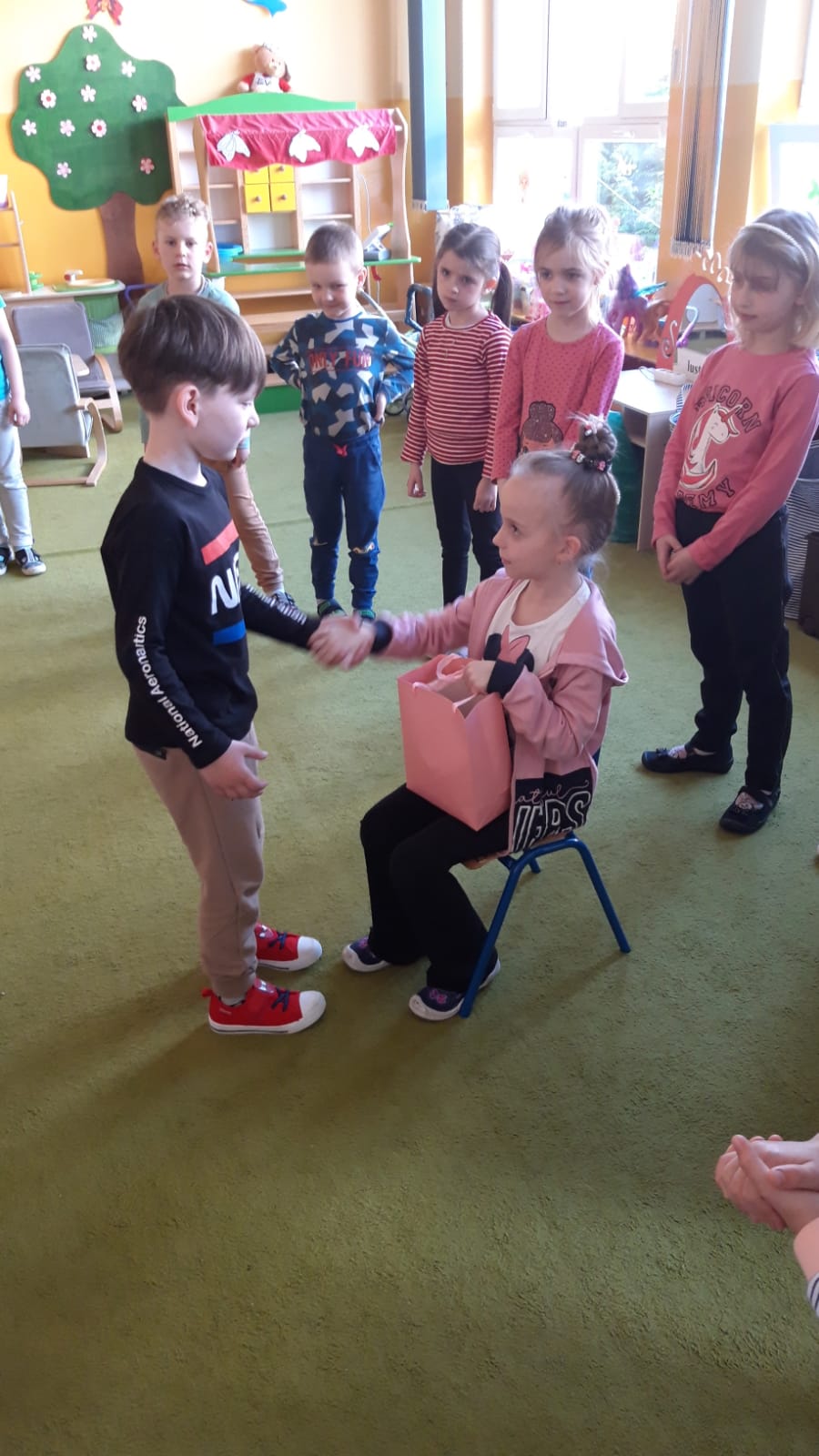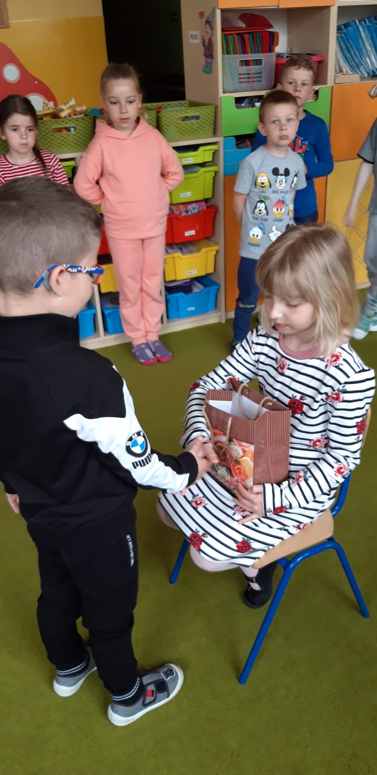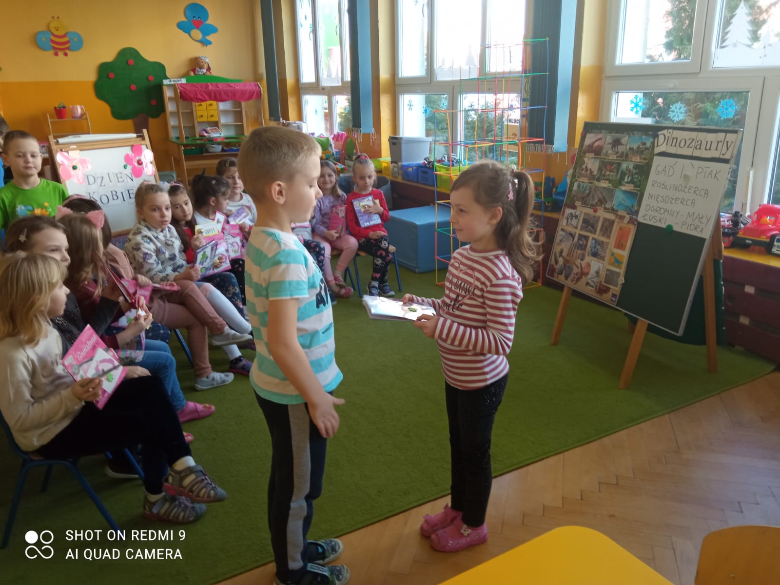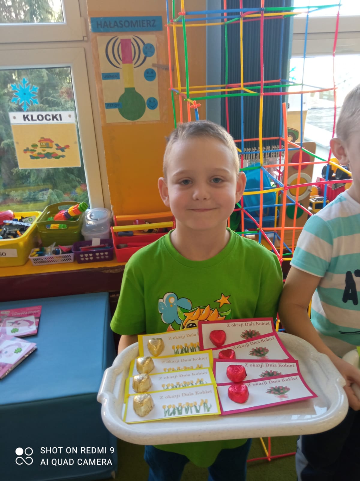 Chłopcy pamiętają o swoich koleżankach i przygotowali piękne prezenty. Były czekoladowe serduszka z życzeniami ”Wszystkiego najlepszego z okazji Dnia Kobiet” oraz diamencikowe wyklejanki. Dziewczynki były zachwycone.??