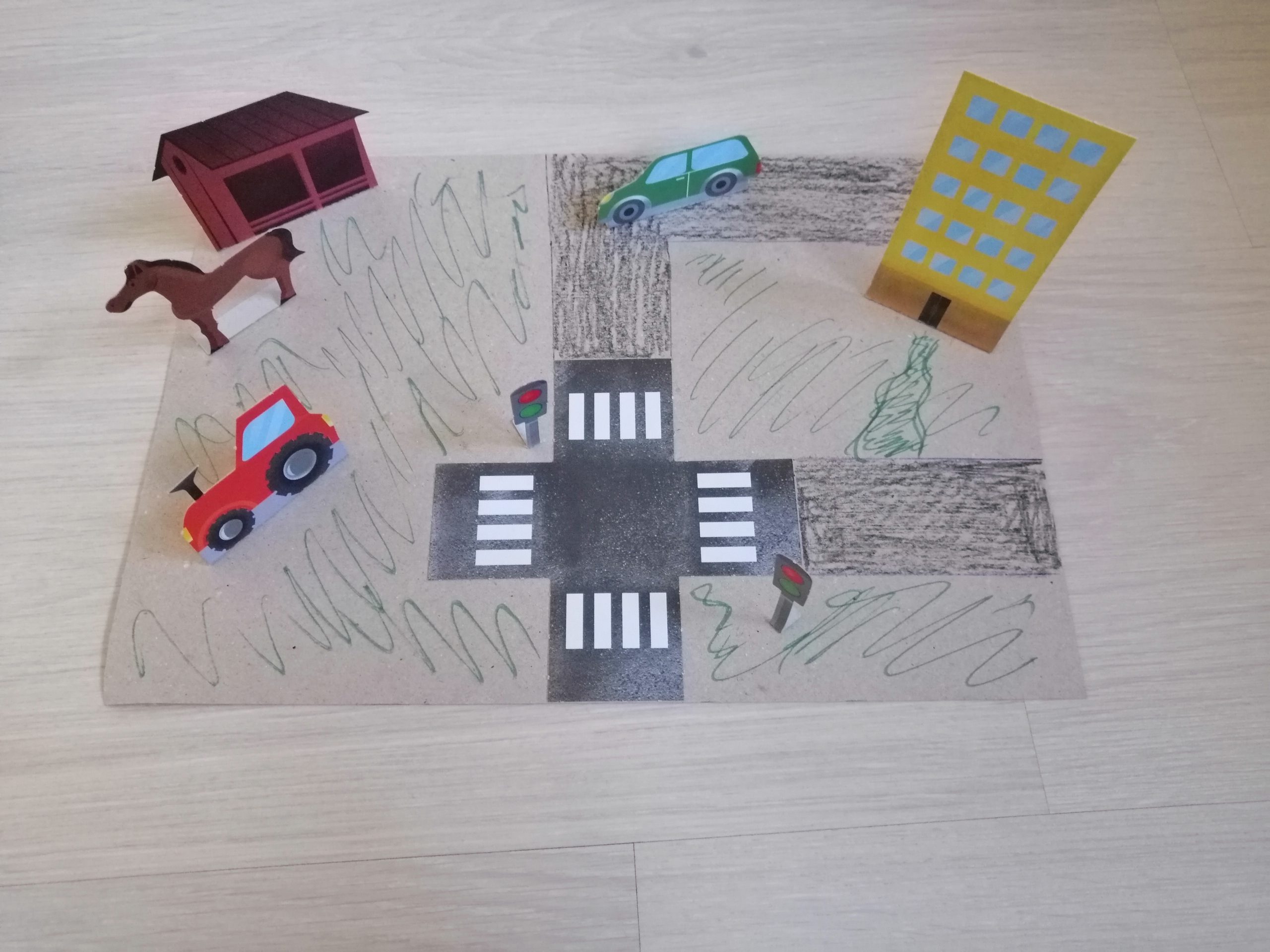 Zabawy z wykorzystaniem makiety ,,przejście dla pieszych”.